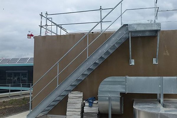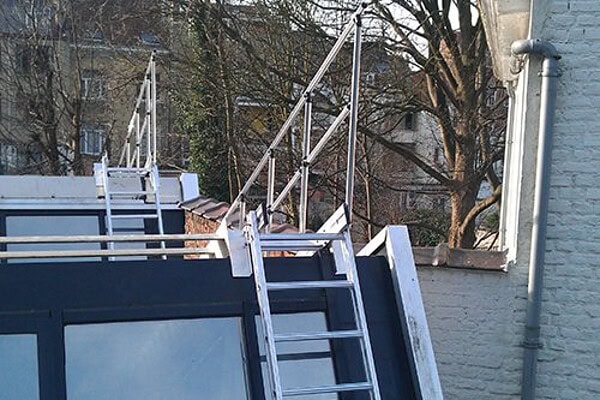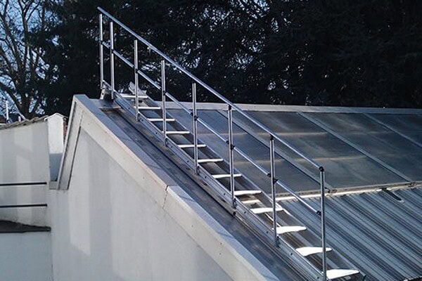 Dit soort installaties wordt volledig op maat gemaakt. Dit kan een overgangsbruggetje zijn of een doorgang tussen twee daken, een toegang voor mensen met een verminderde mobiliteit, een trap, een niveau met roosters, … Wat u wenst is wellicht meestal uit te voeren, vertel ons wat uw wensen zijn….